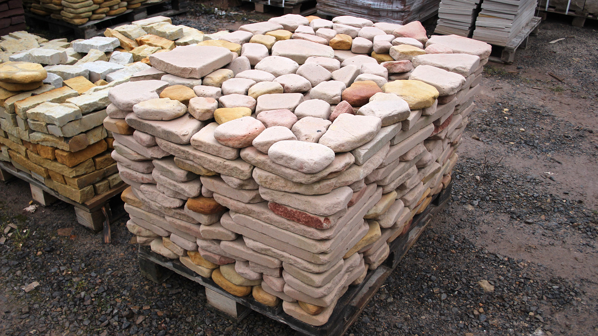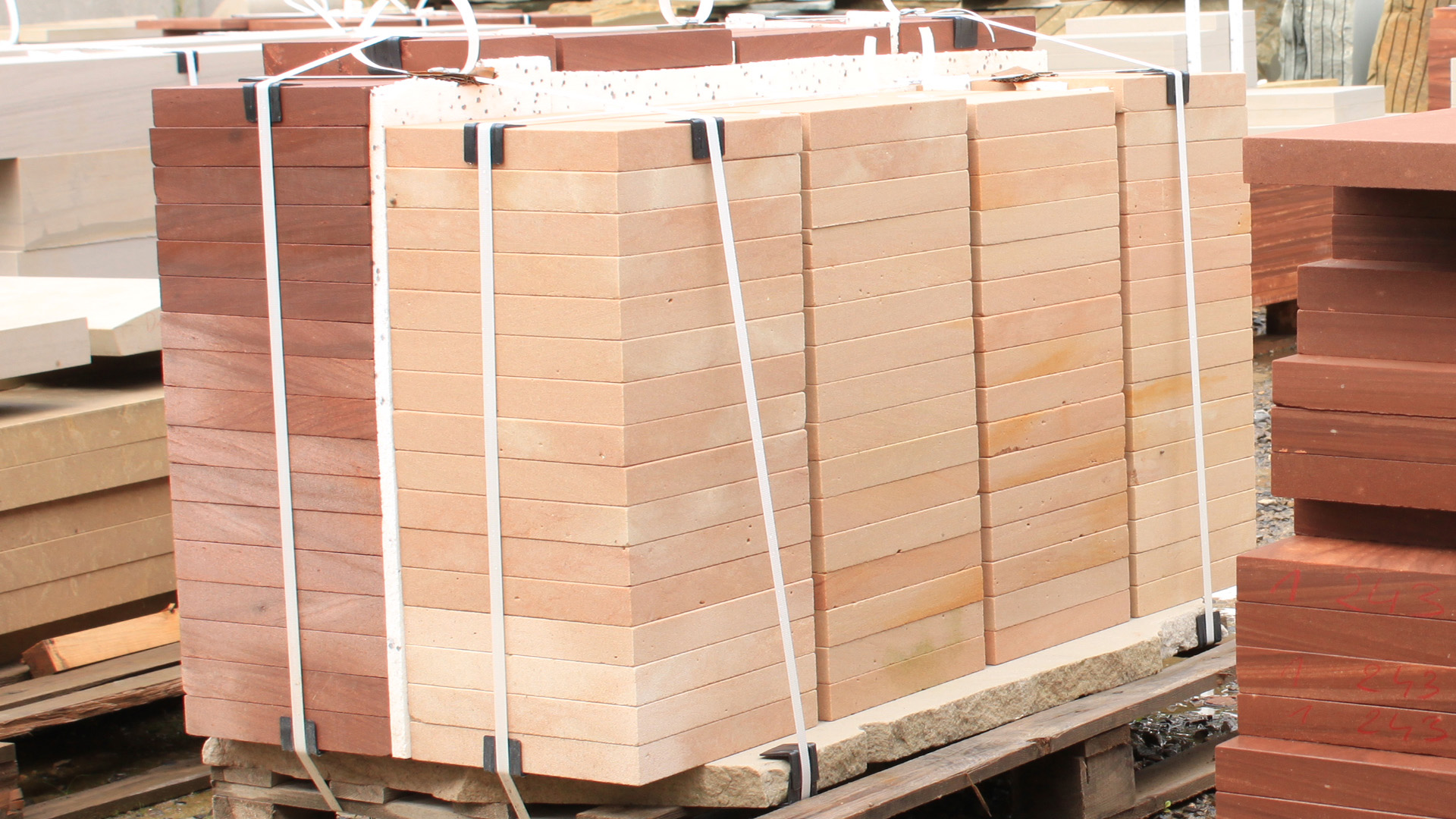 Pink sandstone with a very interesting and warm appearance. This sandstone has higher granularity. Some yellow veins may appear.